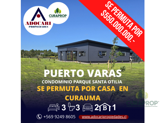 🏡 Se PERMUTA espectacular casa en Condominio Parque Santa Otilia, a solo 3 km del centro por Ruta Ensenada. Vive rodeado de naturaleza, tranquilidad y confort.